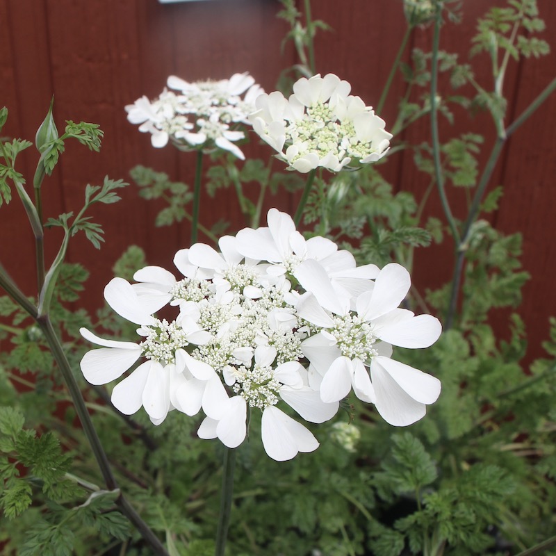 ヨーロッパ原産のセリ科の一年草。 茎は直立し、よく分枝し、草丈はcm。 葉は互生し、羽状に細かく分裂する。 45月に茎頂に10cmの散形花序をだし、白色の花をつける。 外側の花弁は2裂する。 英 名 White lace flower,Minoan lace 別 名 オルレイヤオルラヤの特徴 茎の頂部に、小さな白い花をまとまって咲かせるイングリッシュガーデンでは定番のお花。 ナチュラルガーデンには必須の人気種。 花が大きく美しい「オルレア・グランディフローラ」などがあります。 本来は多年草ですが夏の暑さに弱いため、暖地では秋まきの一年草として扱われるのが一般的です。 日本では一年草扱いですが環境がよければ 大好きな白い花です。育てやすいので初心者に自信を持っておすすめできます。 園芸初心者でも簡単に育てられるお花、オルレア 私が園芸初心者におすすめしたいお花はオルレアです。オルラヤとも言われます。 めっちゃ強い。 この花のよいところは